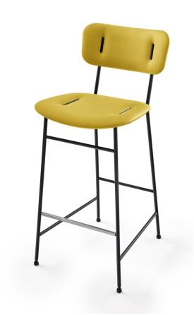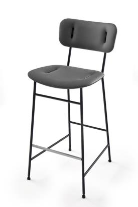 Tabouret Bas Italia Tissu Ecopelle Noir Structure Chrome