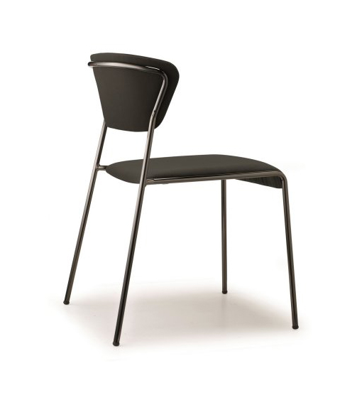Chaise AGATHA-Structure nickel noir brillant-Assise et dossier écopelle noir