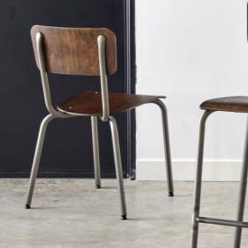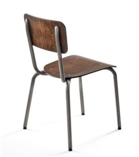 Chaise ALEX structure acier verni transparent, assise et dossier bois effet vintage