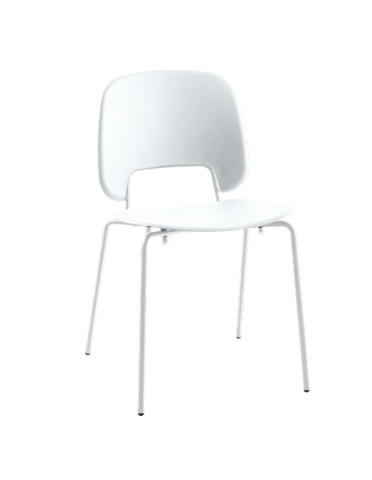- L'assise et le dossier sont en polypropilène blanc.