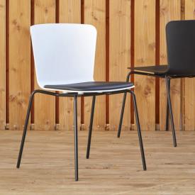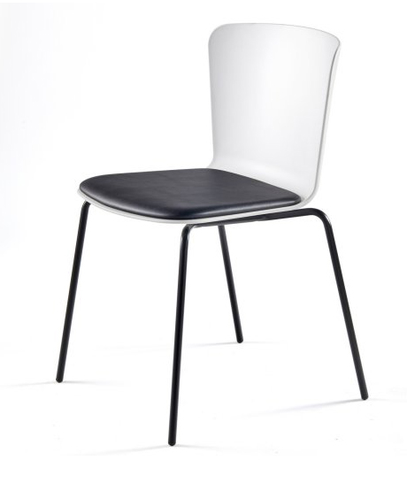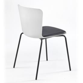 Chaise polypropylène CALLAS blanc avec coussin en tissu ecopelle noir, structure acier laqué noir