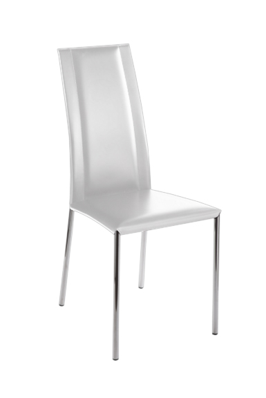 Chaise cuir R CHLOE blanc dossier haut structure chrome