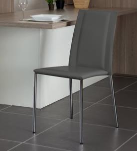 Chaise cuir R CHLOE gris foncé dossier bas structure chrome