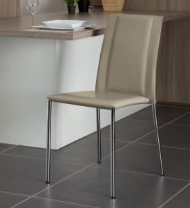 Chaise cuir R CHLOE vanille dossier bas structure chrome