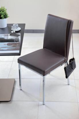 - L'assise et le dossier sont revêtus de tissu simili cuir marron.