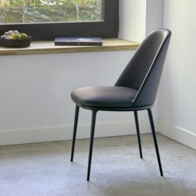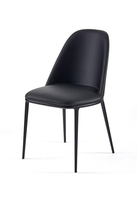 Chaise tissu ecopelle LEA Noir piétement en acier laqué noir