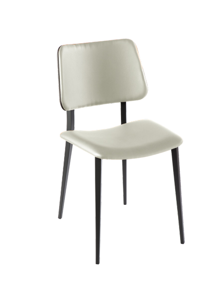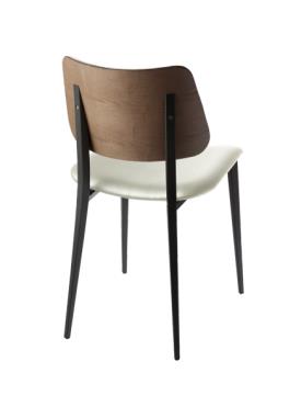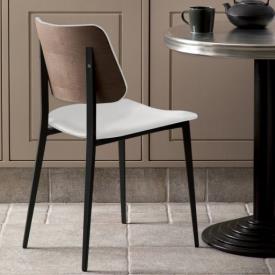 Chaise ecopelle LEONE Blanc piétement en acier graphite graphite dos noyer