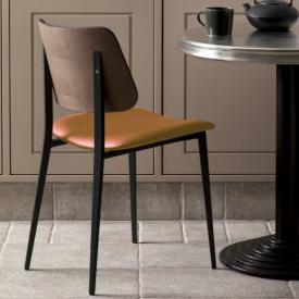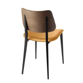 Chaise ecopelle LEONE ocre piétement en acier graphite dos noyer