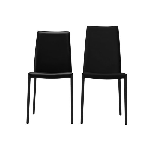 Chaise NAYA structure graphite dossier bas et assise en cuir noir