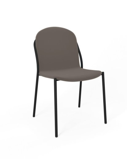 Chaise SAMI 4 pieds acier noir mat, assise et dossier simili cuir taupe