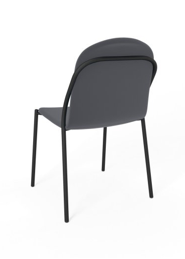 Chaise SAMI 4 pieds acier noir mat, assise et dossier simili cuir plomb