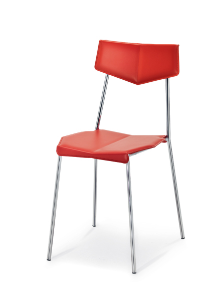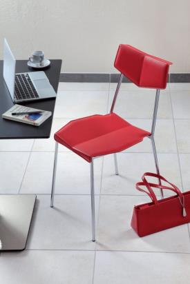 - L'assise et le dossier sont revêtus de cuir reconstitué rouge.