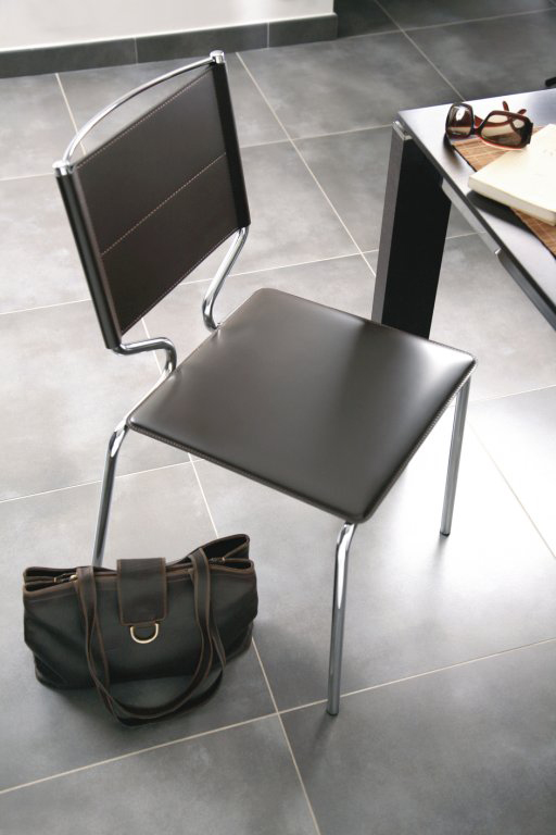 Chaise cuir ZOE noir, structure chrome