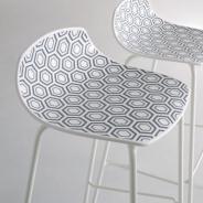 - L'assise de la chaise a un style géométrique en technopolymère blanc et gris.