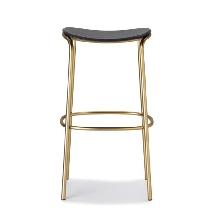 tabouret bas SWING-Structure acier finition or mat-Assise bois noir