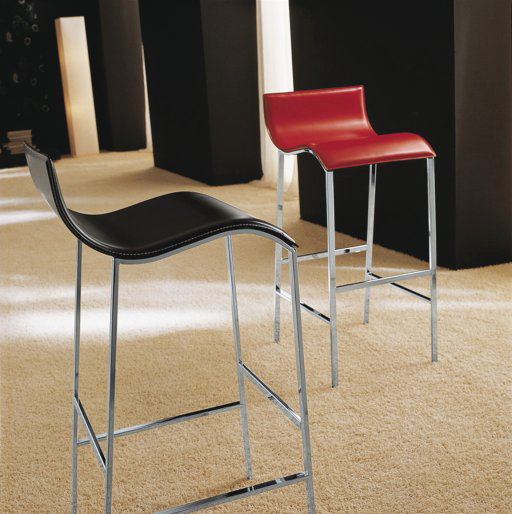 - L'assise et le dossier sont en cuir reconstitué rouge.