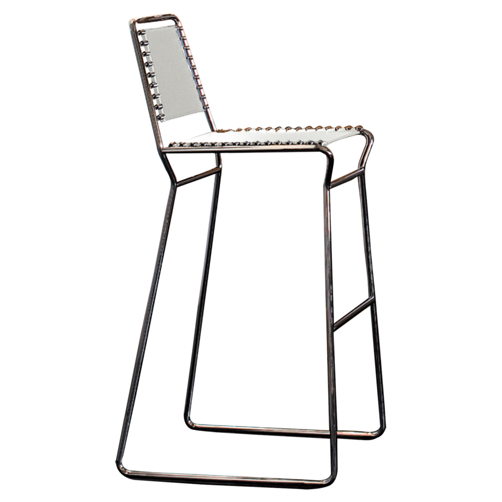 Tabouret haut NUDA - Structure chrome- Assise élastique blanche