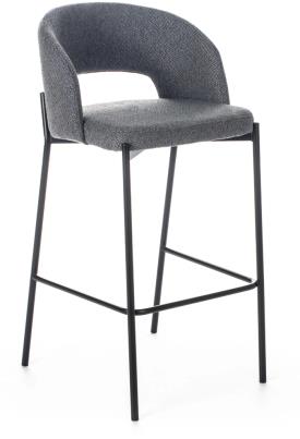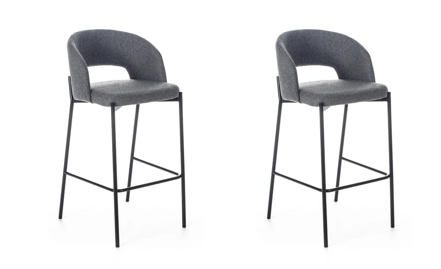 Luisina Réf. CH200420S01 Dimensions : l 52 x h 98 x p 50 cm Lots de 2 assises hauteur plan Sara avec assise tissu gris foncé et piètement métal gris anthracite Lot de 2 tabourets design hauteur plan de travail. Charge maximale de 130kg. Tissu tressé. Matériaux & Coloris Matériau piétement : Métal Matériau assise : Tissu Matériau dossier : Tissu Couleur piètement : Anthracite Couleur assise : Gris foncé Poids net (en kg) : 15