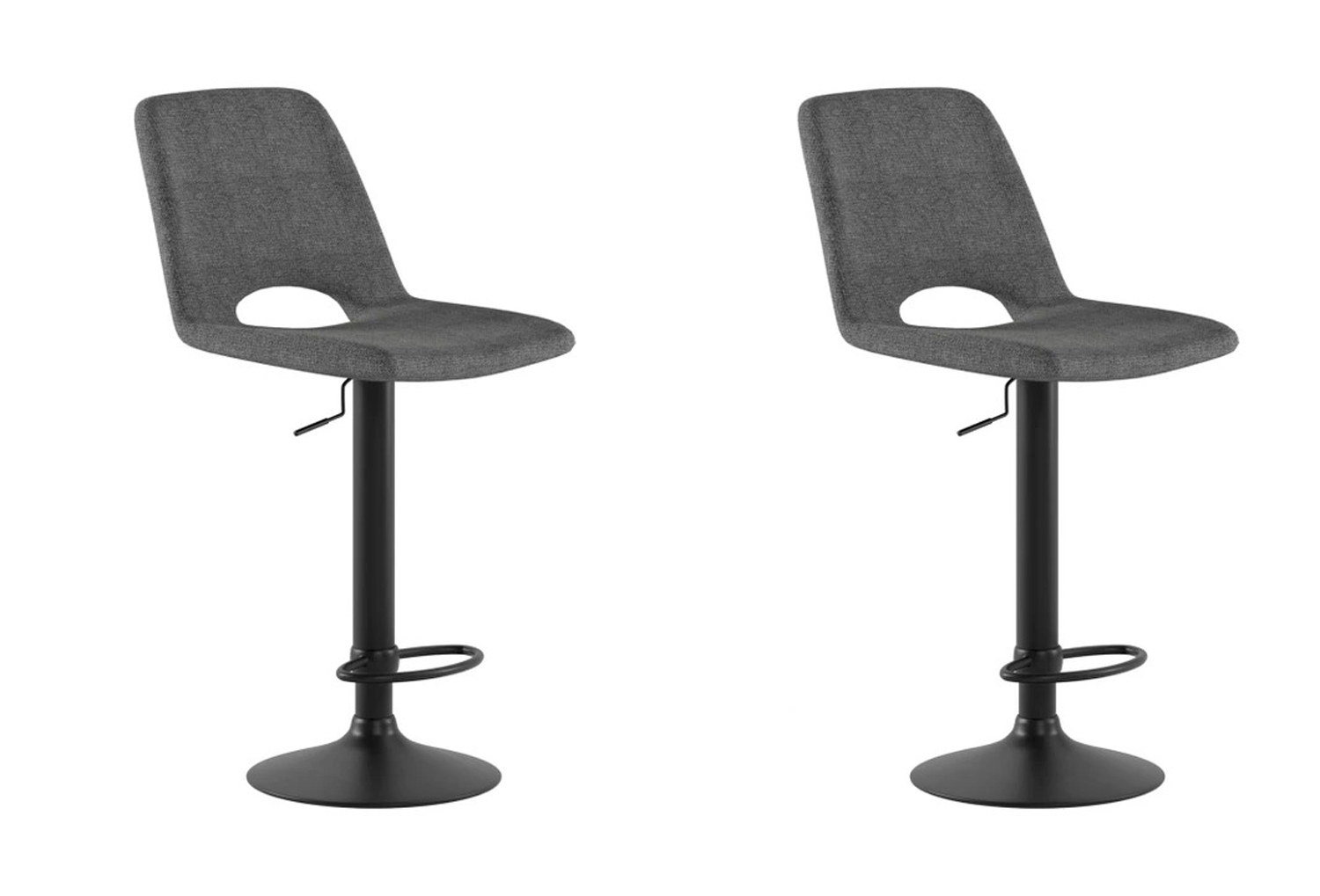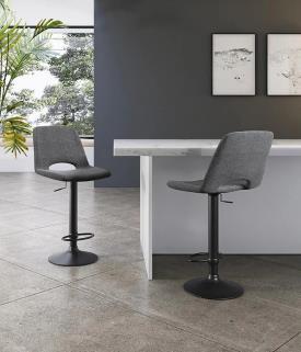 Lot de 2 tabourets design hauteur réglable 60 - 75 cm. Charge maximale de 130kg. Tissu easy clean, anti-taches et déperlant.