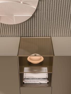 Buffet Modulo avec éléments en verre / Structure en mélaminé Avana dekor, éléments en verre bronzé, base Pero en plexiglas