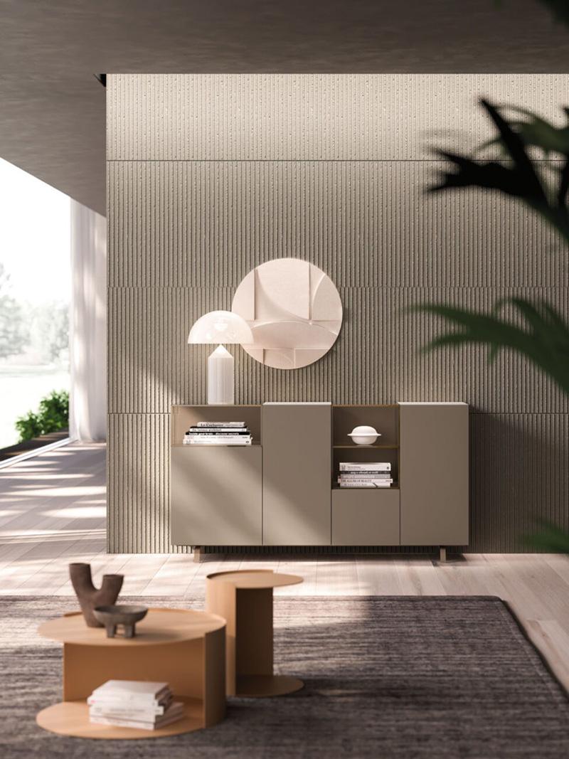 Grâce à ses combinaisons infinies de compartiments ouverts, de portes et d'éléments spéciaux, le buffet Modulo offre la plus grande variété de solutions au sein de la collection, tant en termes de dimensions que de configurations.