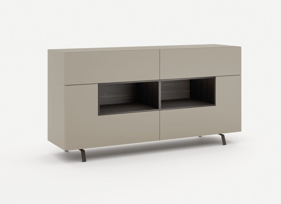 Grâce à ses combinaisons infinies de compartiments ouverts, de portes et d'éléments spéciaux, le buffet Modulo offre la plus grande variété de solutions au sein de la collection, tant en termes de dimensions que de configurations.