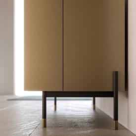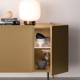 Buffet Piega en métal laqué Cumino, plateau en finition Rovere. Piètement en métal bruni et détails en métal laqué Cumino.