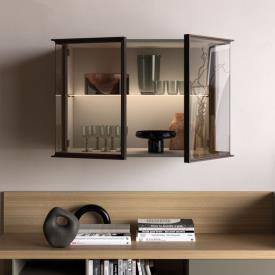Vitrine suspendue Vetrina en laque mate anthracite avec porte en métal bruni et verre bronzé, étagères en verre bronzé avec éclairage LED arrière.