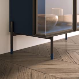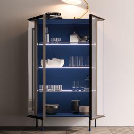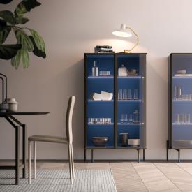Buffet Piega avec portes vitrées transparentes et structure Blu mat. Piètement en métal bruni avec détail de pied laqué Blu mat.
