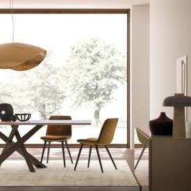 Table Diago avec piètement en métal bruni et plateau Dekor Avana, chaise Gemma.