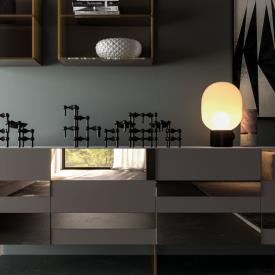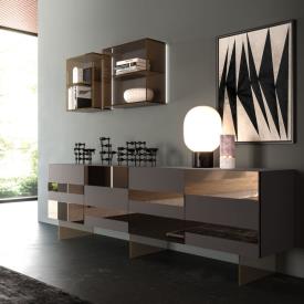 Buffet Vitro en laque mate Tufo et miroir bronze, base Pero en plexiglas. Meubles muraux Vitro en verre bronze rétroéclairé.