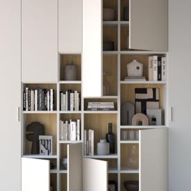 La bibliothèque s'intègre pleinement à l'architecture intérieure, créant une composition aux dimensions importantes et structurant les espaces. Ses possibilités de composition et sa modularité permettent de concevoir une infinité de solutions, tout en conservant une cohérence stylistique dans les finitions, les couleurs et les matériaux.