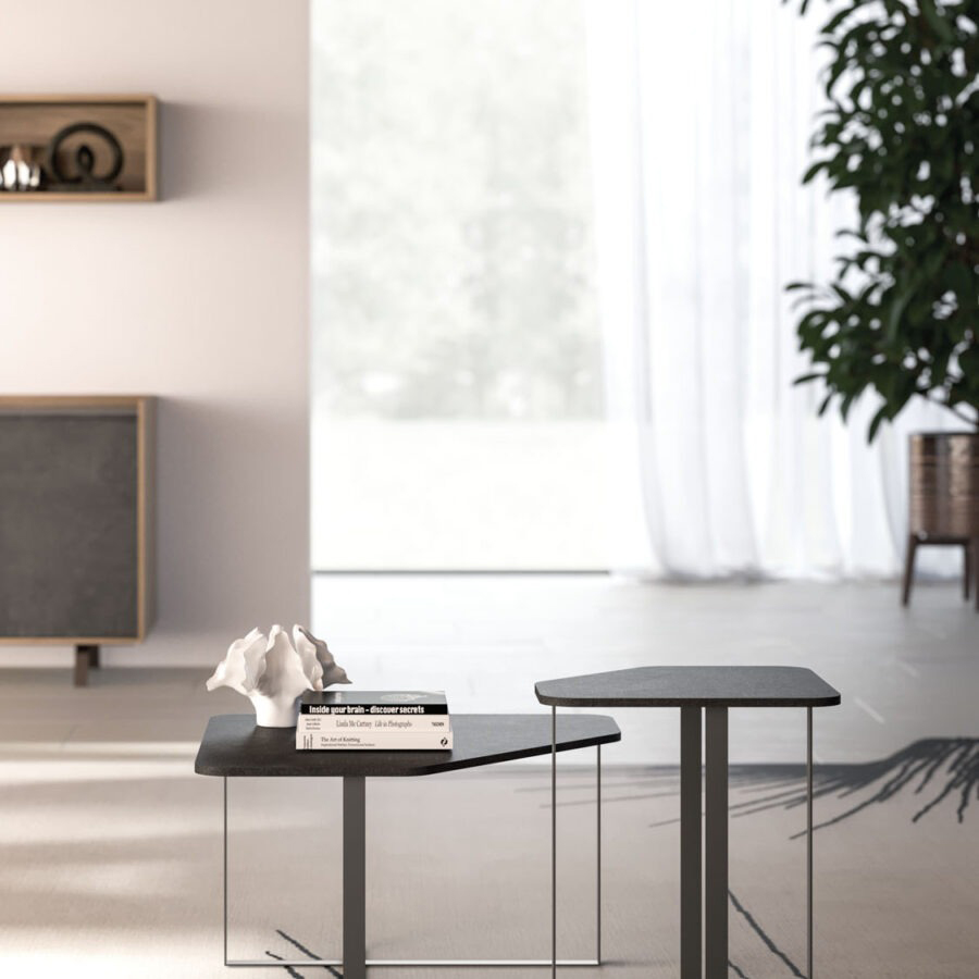 Amaranto est une table basse destinée à un public jeune et dynamique, conçue pour rythmer le salon ; son plateau se caractérise par des angles arrondis et une ligne épurée.