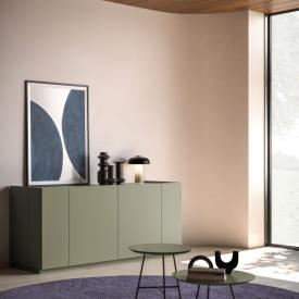 Tables basses Glicine en finition laquée mate Oliva et piètement en métal bruni.