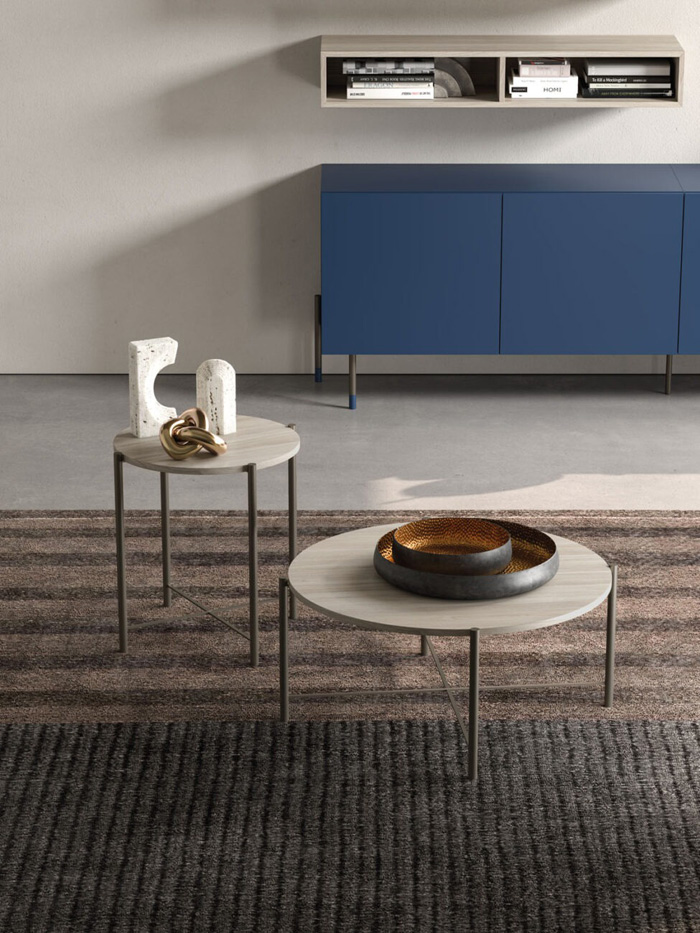 Page précédente : Tables basses Iris en finition laquée métal Cumino.