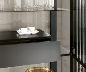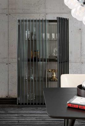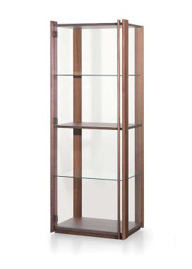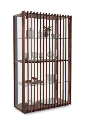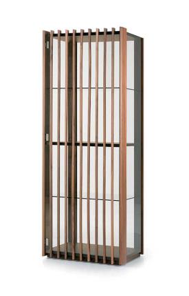 La structure en bois massif et le verre transparent font de Bay la vitrine par excellence, configurable selon vos besoins. Une vitrine à une ou deux portes, ouverte ou avec des façades en fines lattes de bois verticales. Idéale aussi bien pour un salon moderne que pour des intérieurs plus contemporains. Vitrine ou bibliothèque avec structure en frêne massif ou en noyer Canaletto. Verre transparent ou fumé. Tiroir laqué mat sur demande.