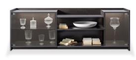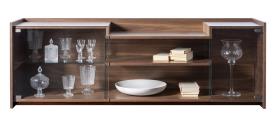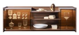 Chaque détail raconte une histoire d'élégance et de chaleur, vous invitant à une expérience sensorielle incomparable. Laissez-vous séduire par ce chef-d'œuvre où nature et modernité se rencontrent dans un univers magique. Buffet avec structure en noyer Canaletto massif ou en frêne. Compartiment ouvert avec étagère en bois ou en verre et portes vitrées en bronze clair ou transparent.