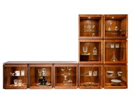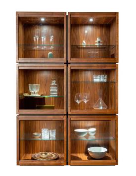 Découvrez l'univers innovant de MESH : un système de mobilier modulaire en noyer Canaletto ou en frêne massif qui s'adapte parfaitement à vos besoins. Avec sa polyvalence et son éclectisme incomparables , MESH est le concept design qui transforme votre espace en un véritable concentré de fonctionnalité et de style. Sa construction raffinée vous surprendra, ajoutant une touche d'élégance à n'importe quel environnement. Système modulaire composé de caissons en noyer Canaletto ou en frêne plaqués et d'entretoises noires. Portes en noyer Canaletto ou en frêne massif avec verre clair, transparent bronze ou fumé. Plateau en noyer Canaletto ou en frêne plaqué. Éclairage LED sur demande.