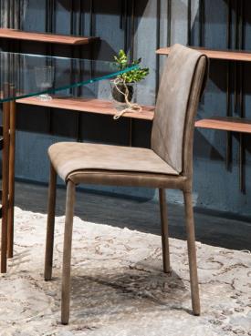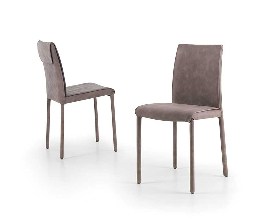Chaise en similicuir avec structure métallique entièrement recouverte. Disponible également avec revêtement Econabuk dans différents coloris.
