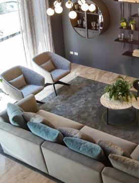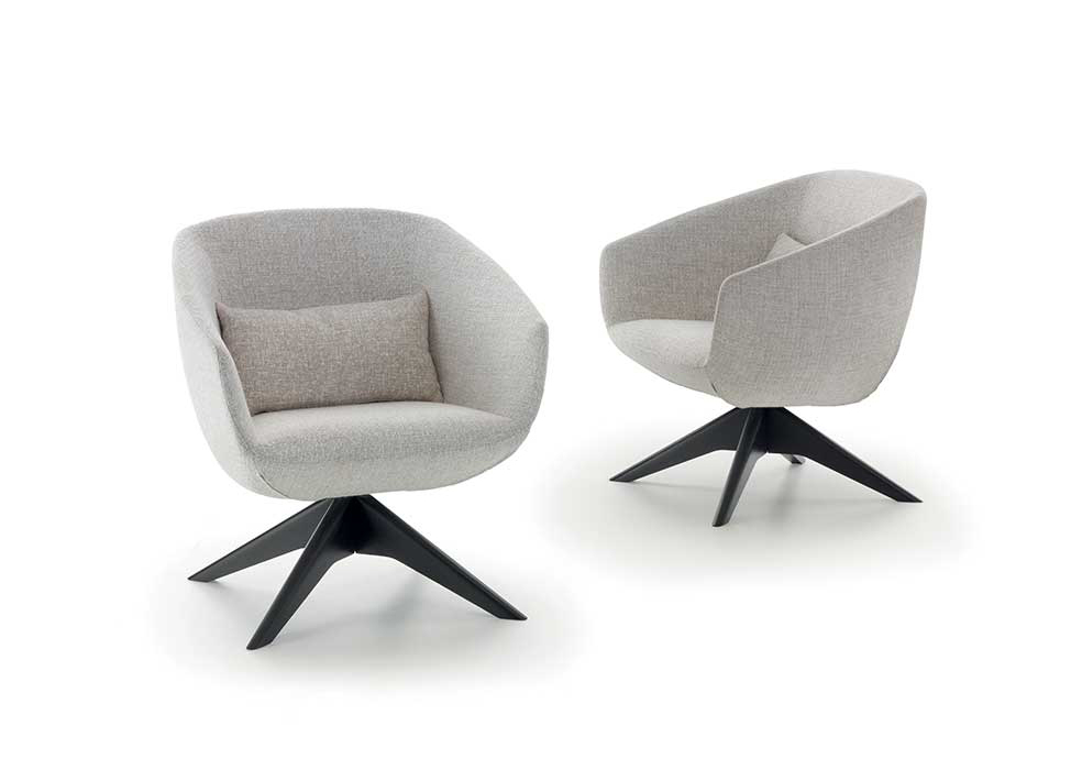 Élégant fauteuil pivotant avec piètement en frêne massif, idéal pour le salon, associé à un canapé, mais aussi pour la chambre ou les espaces communs des projets professionnels. Ses lignes sinueuses et son assise accueillante invitent à la détente, rendue encore plus confortable par le coussin supplémentaire. Fauteuil pivotant avec piètement en frêne massif. Coque en mousse PU revêtue de cuir, de similicuir ou de tissu de la collection. Sur demande, coussin revêtu de cuir, de similicuir ou de tissu de la collection.