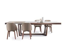 Table à manger avec plateau en marbre, bois ou verre, aux lignes épurées et intemporelles