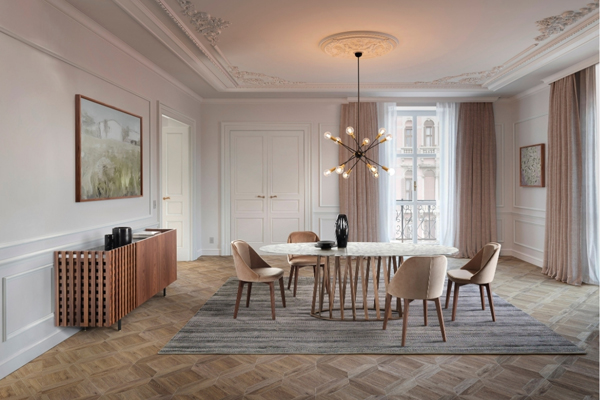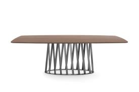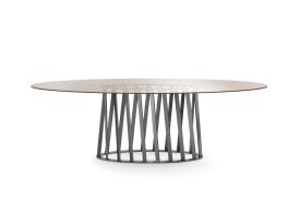 Une table à manger raffinée aux lignes arrondies, où la structure métallique robuste et solide contraste avec le plateau essentiel et léger. Cette élégante combinaison se traduit par un design sophistiqué, que vous choisissiez le plateau en bois, en verre trempé ou en marbre naturel poli. « Une table de caractère et de personnalité, alliant élégance et solidité », telle est la définition de la table Cosmo par son créateur Cesare Arosio. Table à manger avec structure en métal peint. Plateau en frêne plaqué bois ou en noyer Canaletto, en verre trempé clair, bronze transparent ou fumé (10 ou 12 mm d'épaisseur) avec supports électrosoudés, ou en marbre naturel poli.