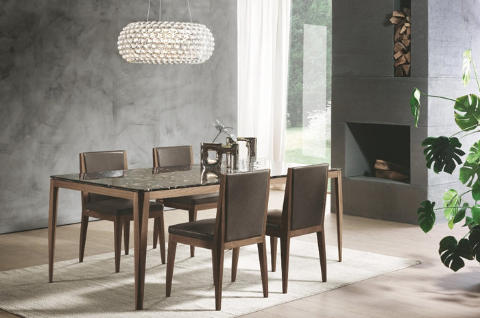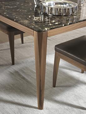 Une fois de plus, le bois s'avère une ressource précieuse et incroyablement polyvalente, idéale pour s'associer à d'autres matériaux et créer des designs raffinés et réussis. Toutes les combinaisons entre le bois et le marbre sont possibles, afin de satisfaire les goûts de chaque client. Dans la solution proposée avec CUT, conçue par l'architecte Matteo Nunziati, la structure en noyer Canaletto massif s'harmonise parfaitement avec le plateau en marbre naturel poli : les veines de la structure en bois qui soutient et encadre le plateau sont clairement visibles, fusionnant avec les gravures naturelles de la pierre, donnant vie à un produit solide et élégant. Table à manger avec structure en noyer Canaletto massif ou en frêne. Plateau en placage de noyer Canaletto, de frêne ou en marbre naturel poli.