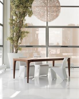 Table à manger fixe ou extensible avec plateau en bois ou en marbre aux lignes essentielles