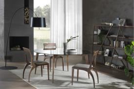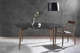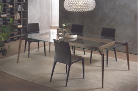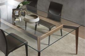 Table à manger Hope avec structure en noyer canaletto massif ou en frêne et plateau en bois ou en verre