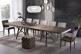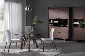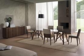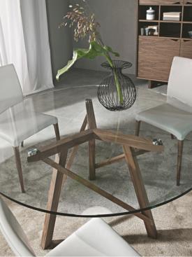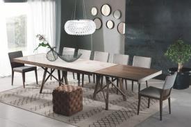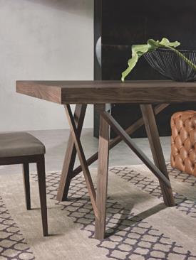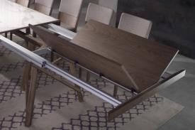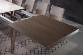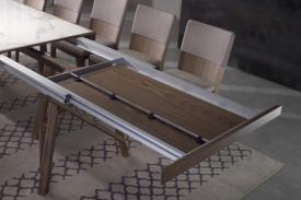 Table fixe ou extensible avec base et structure en noyer Canaletto massif. En version fixe, plateau disponible en bois, en verre, en Cimento® ( béton C02 sable, C03 tourterelle) ou en Laminam® ( céramique effet marbre). En version extensible, plateau disponible en bois, en verre laqué (blanc extra clair, noir ou moka) ou en Laminam® ( céramique effet marbre) avec mécanisme d'auto-assemblage en aluminium et rallonge intérieure plaquée noyer Canaletto.