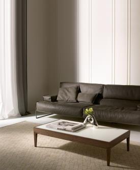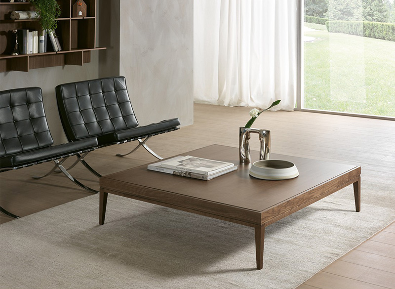 Barnaby est une table basse qui s'adapte à différents styles, des salons classiques aux salons modernes et contemporains. Sa structure en bois massif est disponible en version carrée ou rectangulaire, à associer au plateau classique en bois ou en verre laqué. Table basse de salon avec structure en frêne massif. Plateau en frêne plaqué ou en verre laqué (blanc extra clair, noir, moka ou boue).