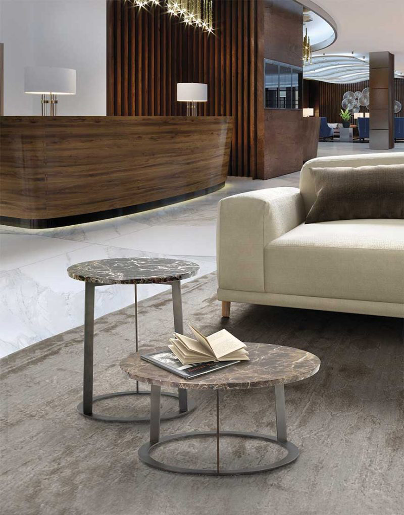 Tables de salon modernes avec structure en trois parties et plateau rond