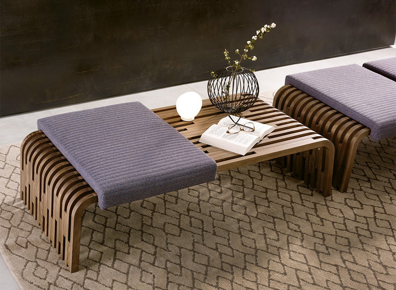 Millerighe n'est pas une simple table, mais un chef-d'œuvre de design et d'artisanat. Le traitement artistique du bois massif latté, aux courbes harmonieuses, embellit les espaces et confère une ambiance chaleureuse à la pièce. Les tables d'appoint et les tables basses, disposées au centre du salon ou à côté du canapé, sont assorties à la console de la même collection. Table basse en noyer Canaletto massif ou en frêne. Coussin recouvert du tissu de la collection sur demande.