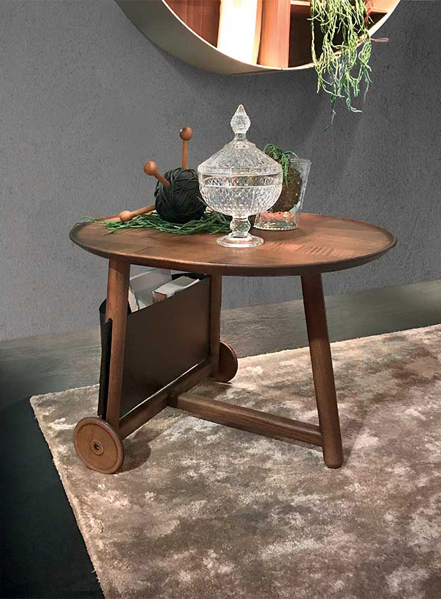 Time est un chariot multifonction, une table basse en bois à roulettes. Simplement esthétique et pratique.